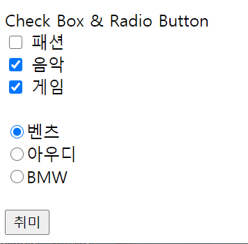 <input type="checkbox" name="hobby" value="패션"> 패션 <br>