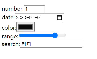 color:<input type="color" name="color" value="#ff0000"><!-- value=red로 초기화해놓음 -->