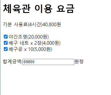 <input type="checkbox" name="option" id="ch2" value="4000" onclick="sum()"> 배구 네트x2면 (4,000원)<br>