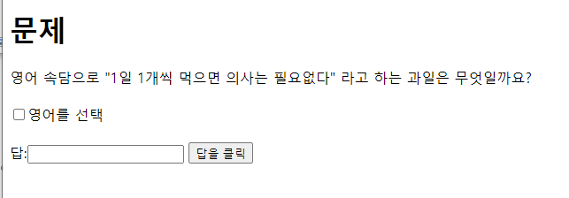 : 폼으로 잡아 태그가 체크되었는지 확인, 입력값을가져와 정답인지 판별