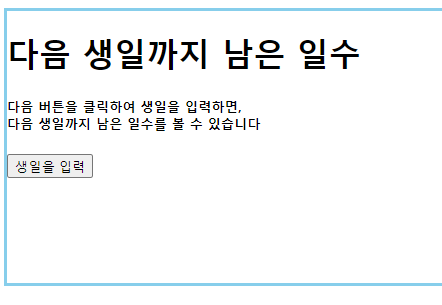 <h5>다음 버튼을 클릭하여 생일을 입력하면, <br> 다음 생일까지 남은 일수를 볼 수 있습니다</h5>