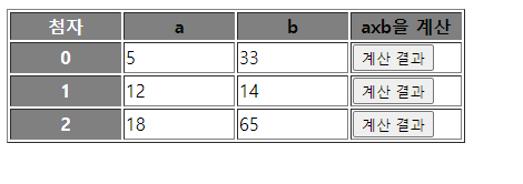 <th style="color: white">첨자</th><th>a</th><th>b</th><th>axb을 계산</th>