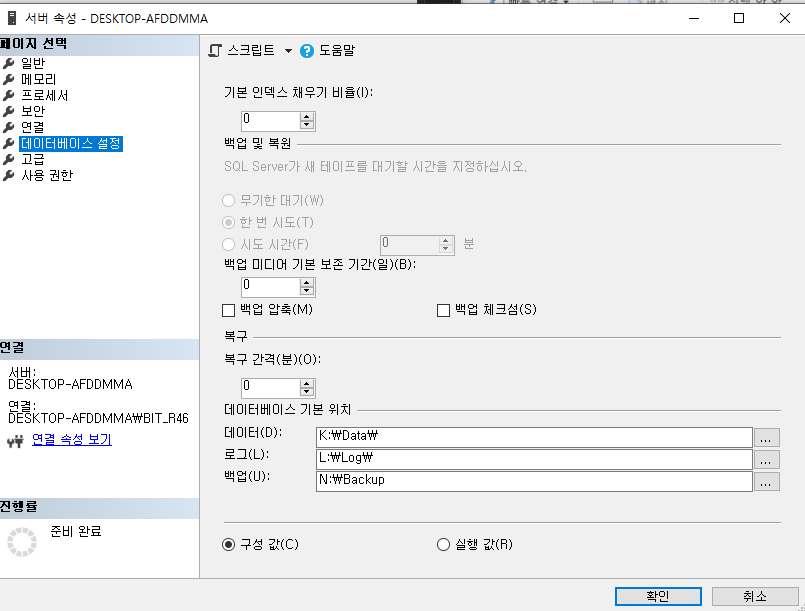 데이터베이스 기본 위치를 해당 위치로 바꿔준다.