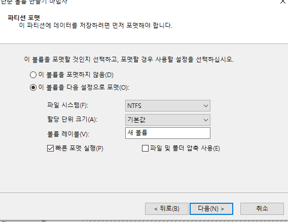 이렇게 디스크공간이 생기면 초기화를 시켜준다.