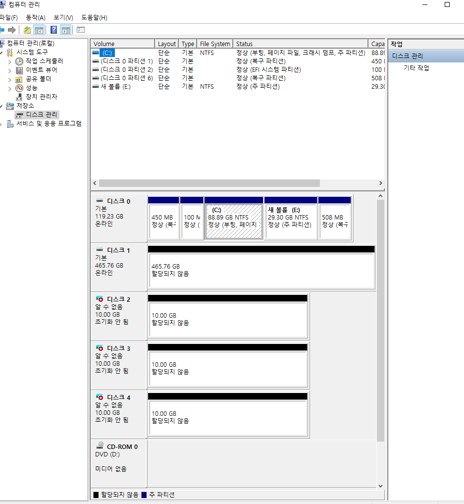 혹시 컴퓨터를 껏다키면 하드 저장공간이 날아간 경우가 있을 수 있다.
