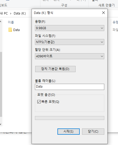 NTFS가 지원되지 않는