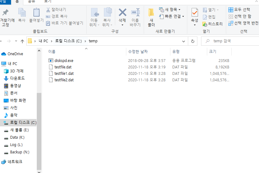 diskspd 수행시 생성 및 사용하는 파일 크기 |