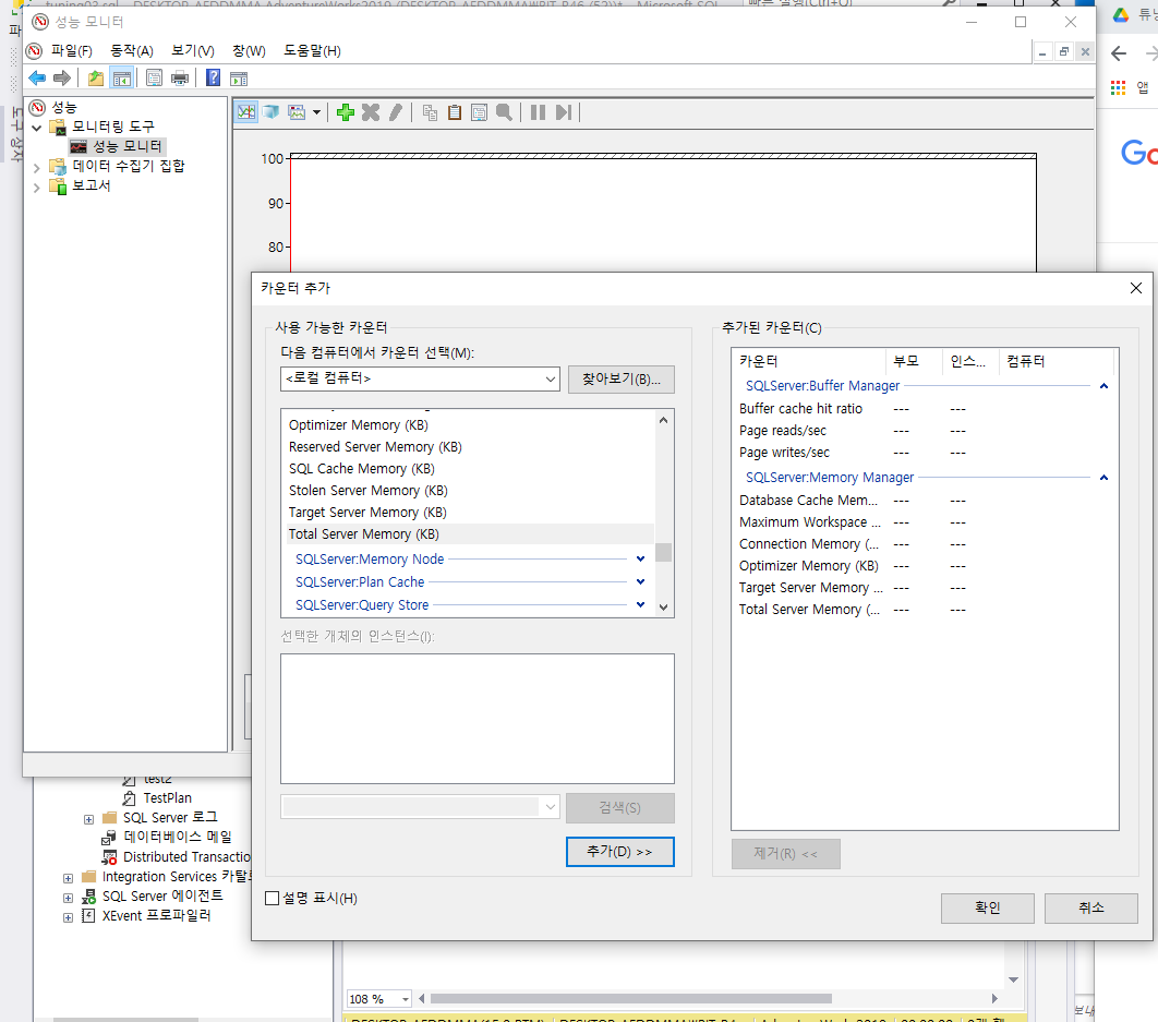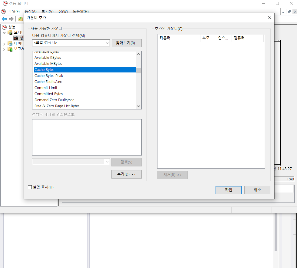 windows 관리도구에 성능 모니터를 켠다.