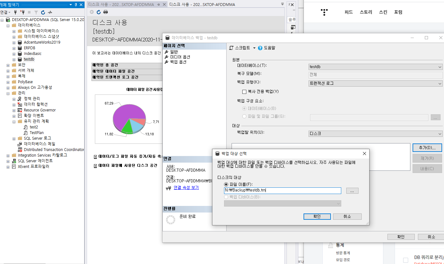 - 전체 백업을 한 후 '트랜잭션 로그백업'을 한 후, 별도로 해줘야 한다.
