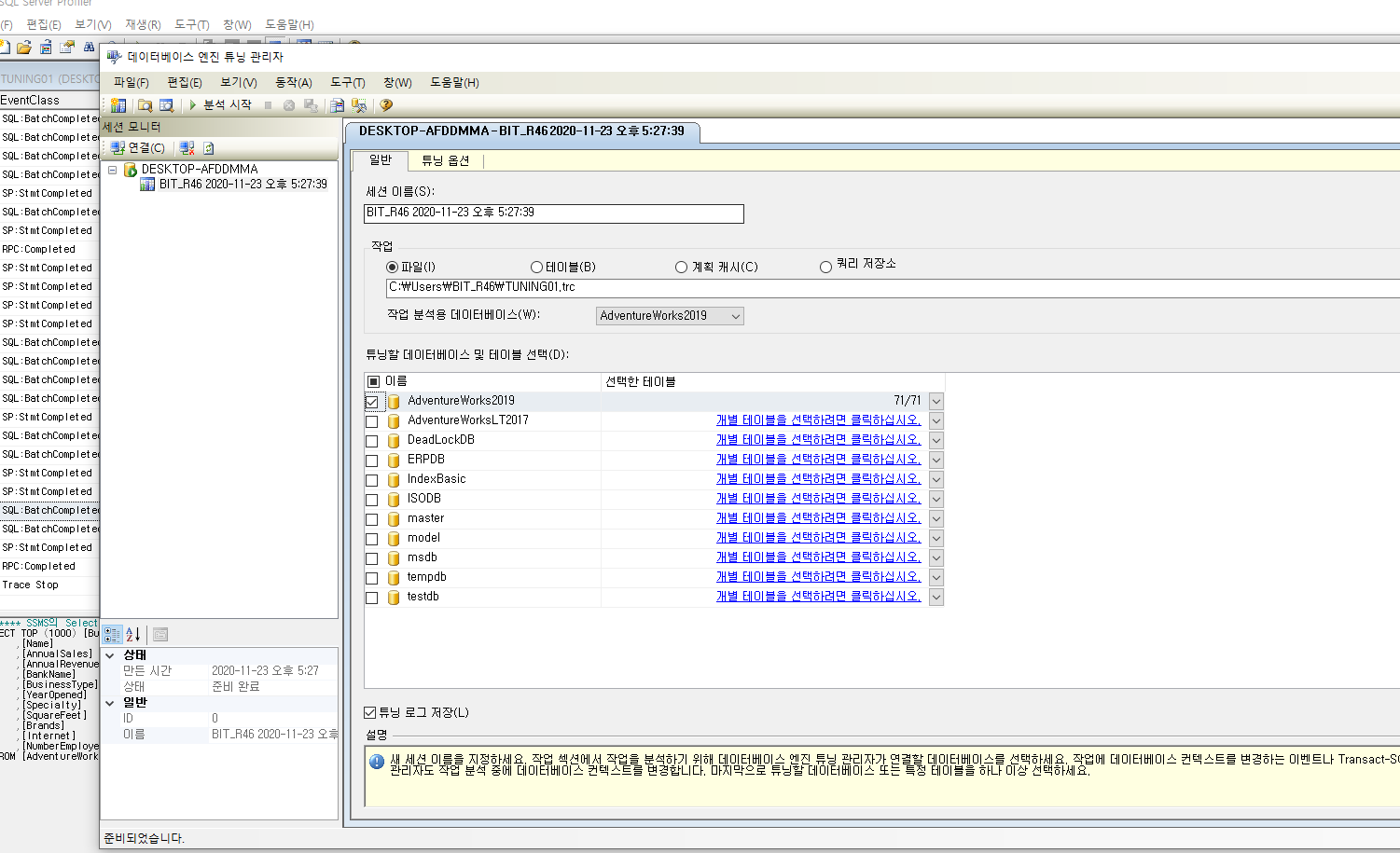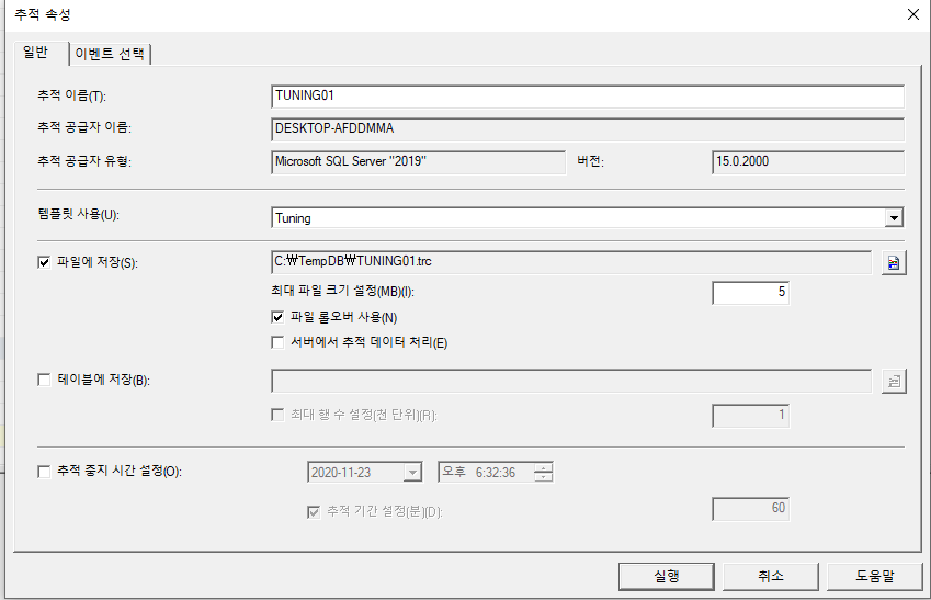 추적 프로파일러에서 TUNING템플릿의 파일을 하나 만든다.