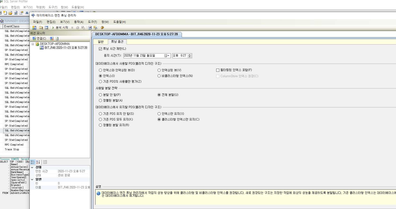 데이터베이스 엔진튜닝관리자를 실행시킨다.