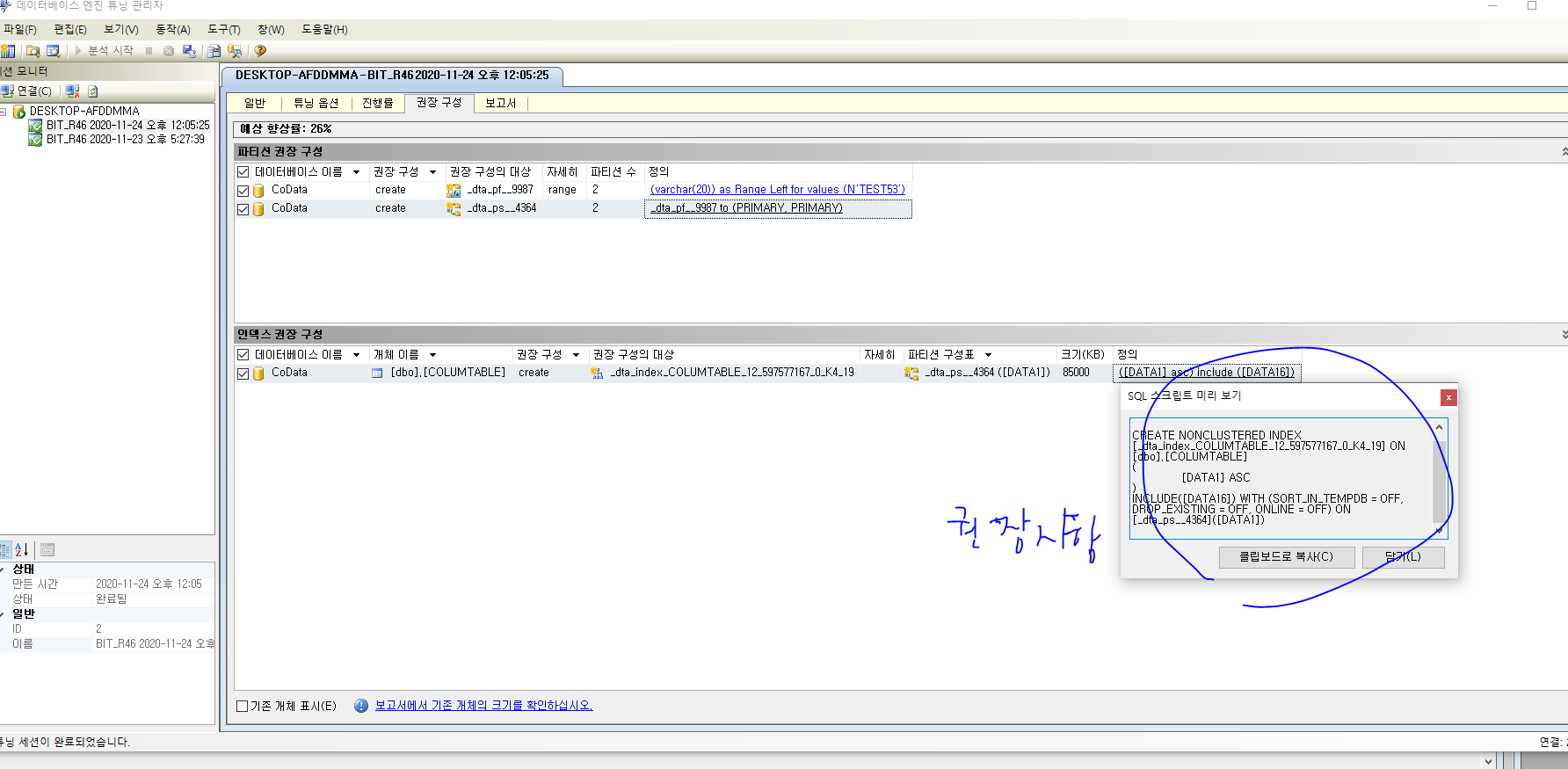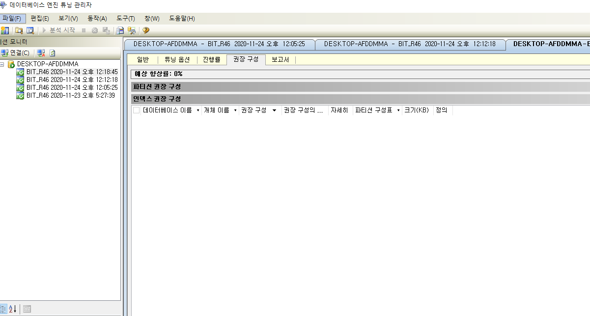 분석시작을 누르고 분석이 마치면 아래와 같이 권장사항이 나올것이다.