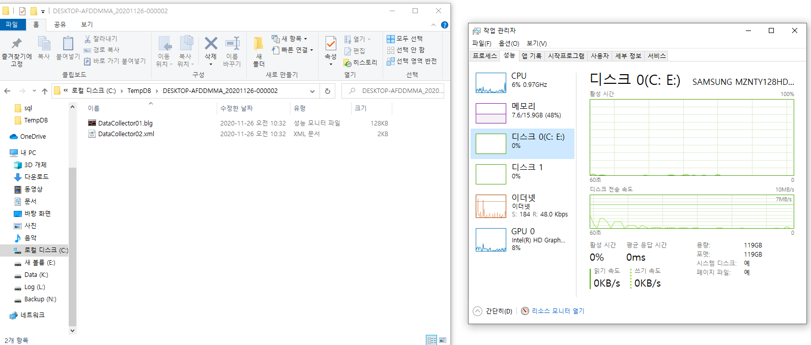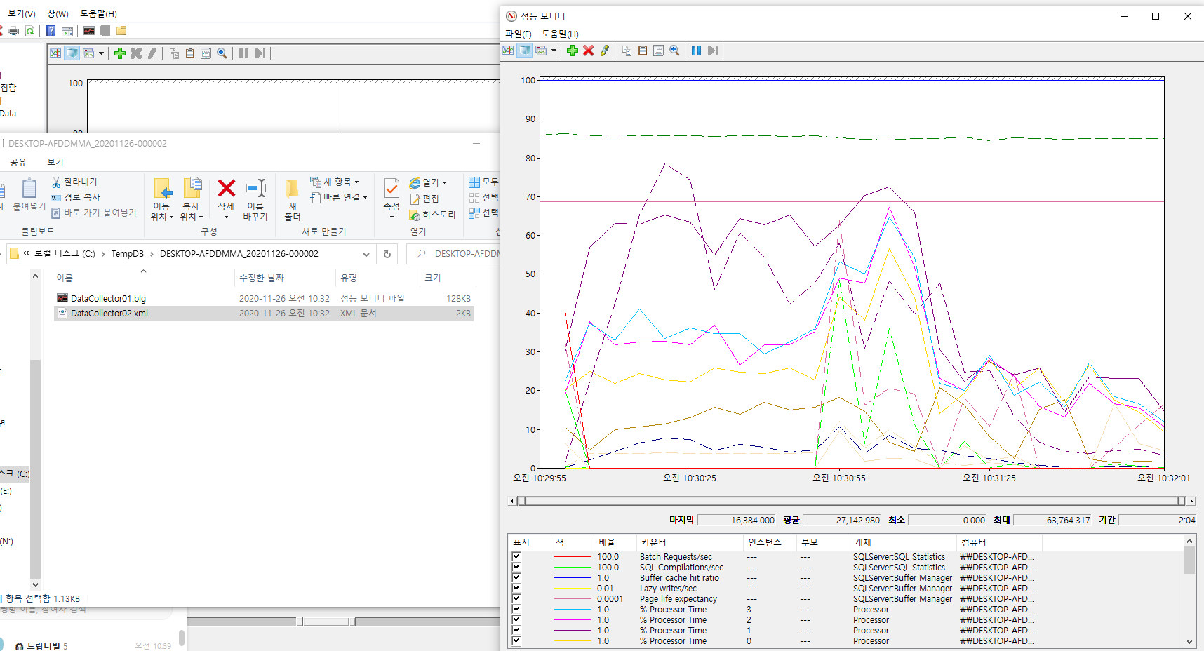 해당 blg파일을 클릭하면 아래와 같이 성능 모니터가 실행된다.