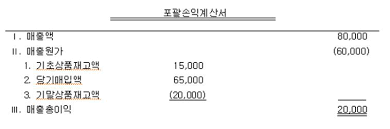 - 매출(소비)수량 : 기초재고수량 + 당기매입수량 - 기말실제개고수량 = 당기매출수량